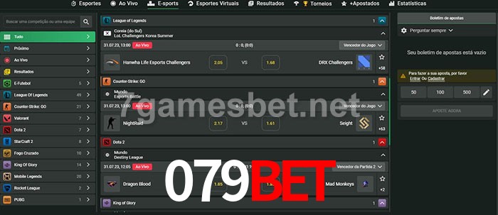 O 079Bet oferece uma grande seleção de opções de apostas em e-sports com probabilidades competitivas